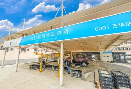 換電場(chǎng)景:電動(dòng)車停在換電站后,工作人員操控按鈕,電動(dòng)車底盤下方的升降機(jī)隨即升起,將位于車底部的舊電池取下并送入后臺(tái),接著運(yùn)出一塊新電池并安裝好,整個(gè)過程大約只需3分鐘。